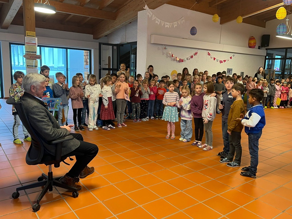 Im Rahmen einer kleinen Feierstunde verabschiedeten alle Schüler und Lehrkräfte der Inzeller Grundschüler den scheidenden Bürgermeister Johann Egger in der Schulaula. Egger tritt Ende April in den Ruhestand.