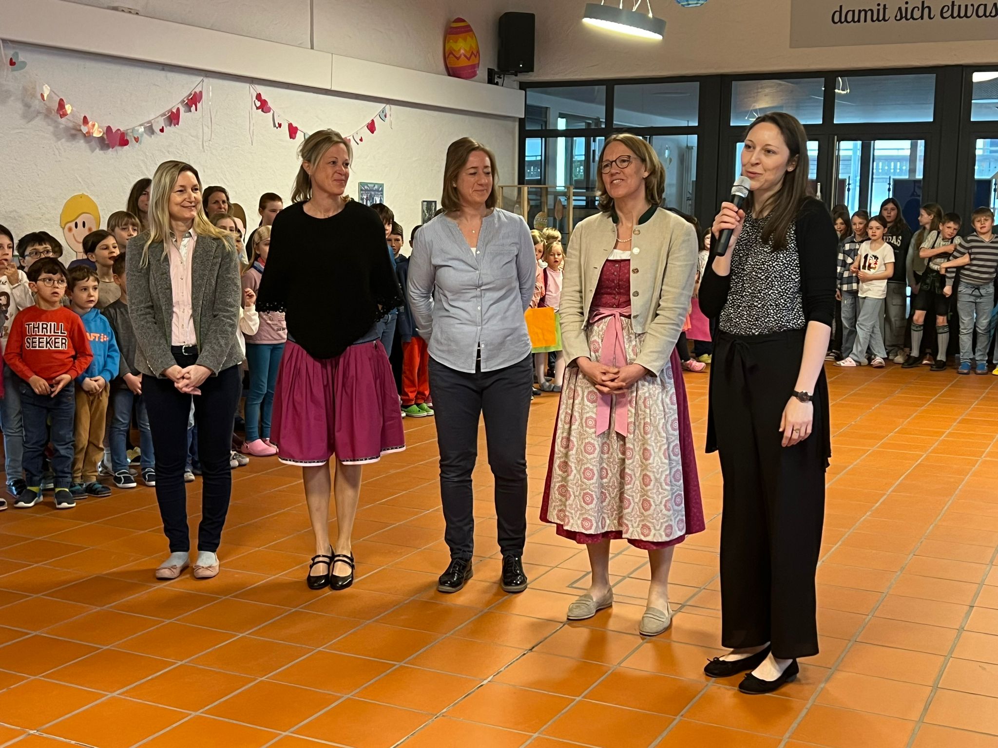 Zu seinem wohlverdienten Ruhestand sprach ihm auch Schulleiterin Elke Thurmayr Worte des Dankes und die besten Wünsche für die Zukunft aus. "Möge dieser neue Lebensabschnitt erfüllt sein mit Freude, Gesundheit, Glück und zahlreichen erfüllenden Momenten." Sie überreichte ihm zur Erinnerung an die Inzeller Schulfamilie eine bedruckte Tasse, auf der ein aus allen Mitarbeitern und Kindern gestelltes Herz abgebildet war sowie einen bunten Blumenstrauß. Zur Erinnerung erhielt er das Abschiedslied und die damit verbundenen Dankessätze auf CD, so dass er diese zukünftig auch zu Hause anhören kann.