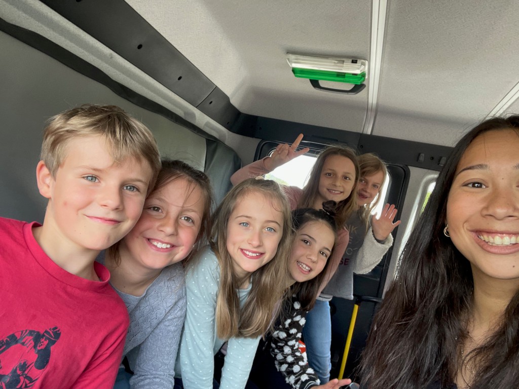 Besonders viel Spaß machte aber das Spritzen mit einem echten Feuerwehrschlauch. Ein weiteres Highlight war im Korb der Drehleiter bis zu 30 Meter nach oben zu fahren. Zu guter Letzt durften alle in einem echten Einsatzfahrzeug Platz nehmen und wurden zurück zur Schule gefahren.