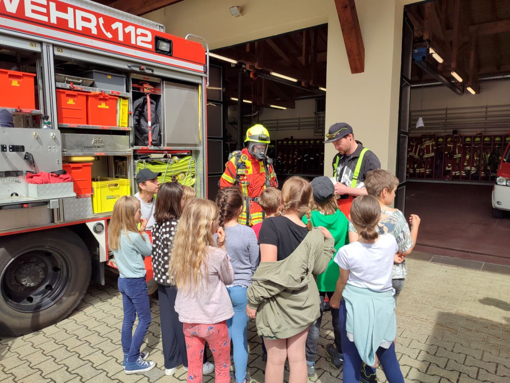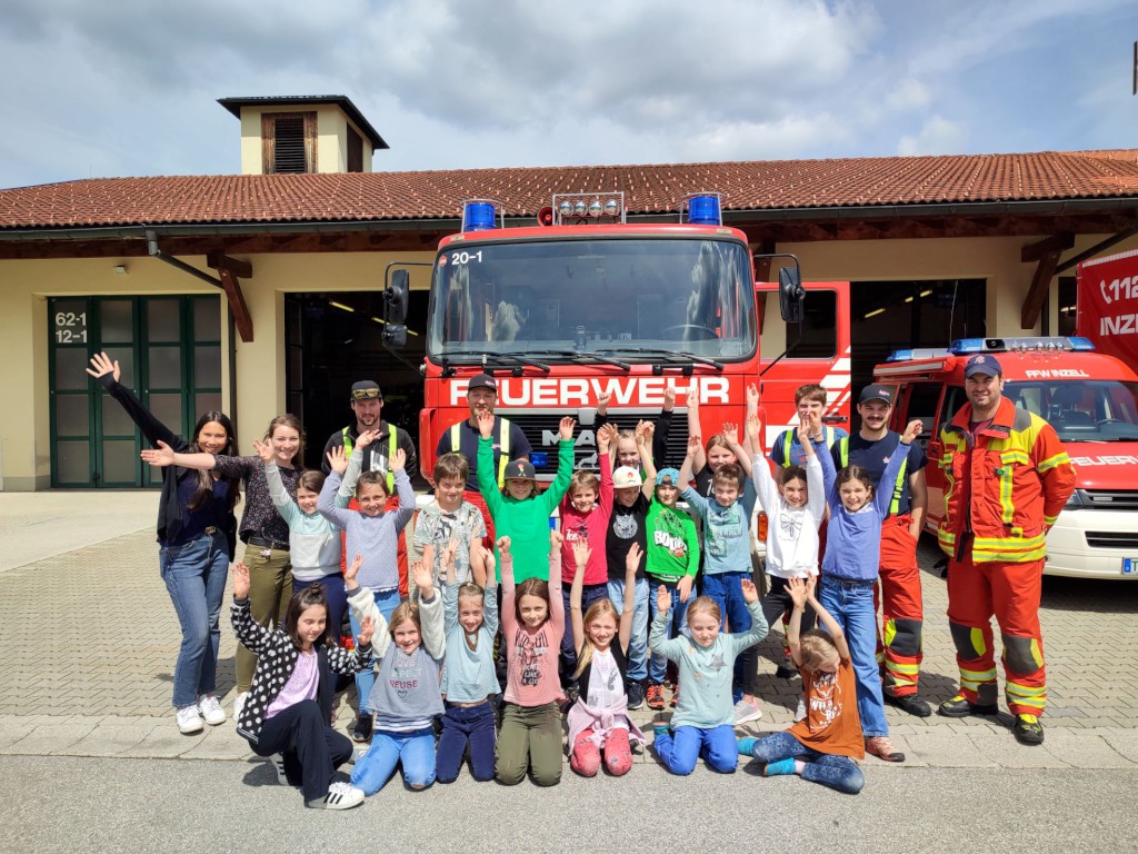 Die Kinder der 3. Klassen besuchten traditionell am Tag nach Christi Himmelfahrt in Begleitung ihrer Lehrerinnen Katharina Holzner und Katharina Seehuber sowie den Schulassistenten Indira Widnyana und Niklas Hobmaier die freiwillige Feuerwehr Inzell.