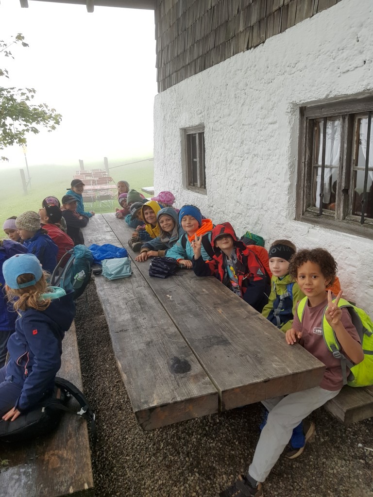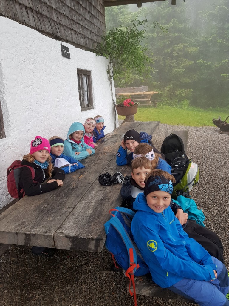 Im Anschluss konnten sich die Kinder bei einer Brotzeit stärken, den Vormittag noch weiter in der Alm mit Spielen verbringen und dann beim Abstieg sogar noch einige Sonnenmomente erleben.