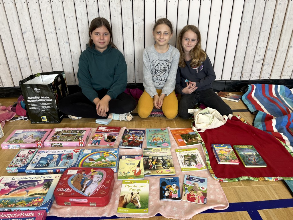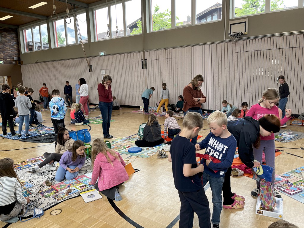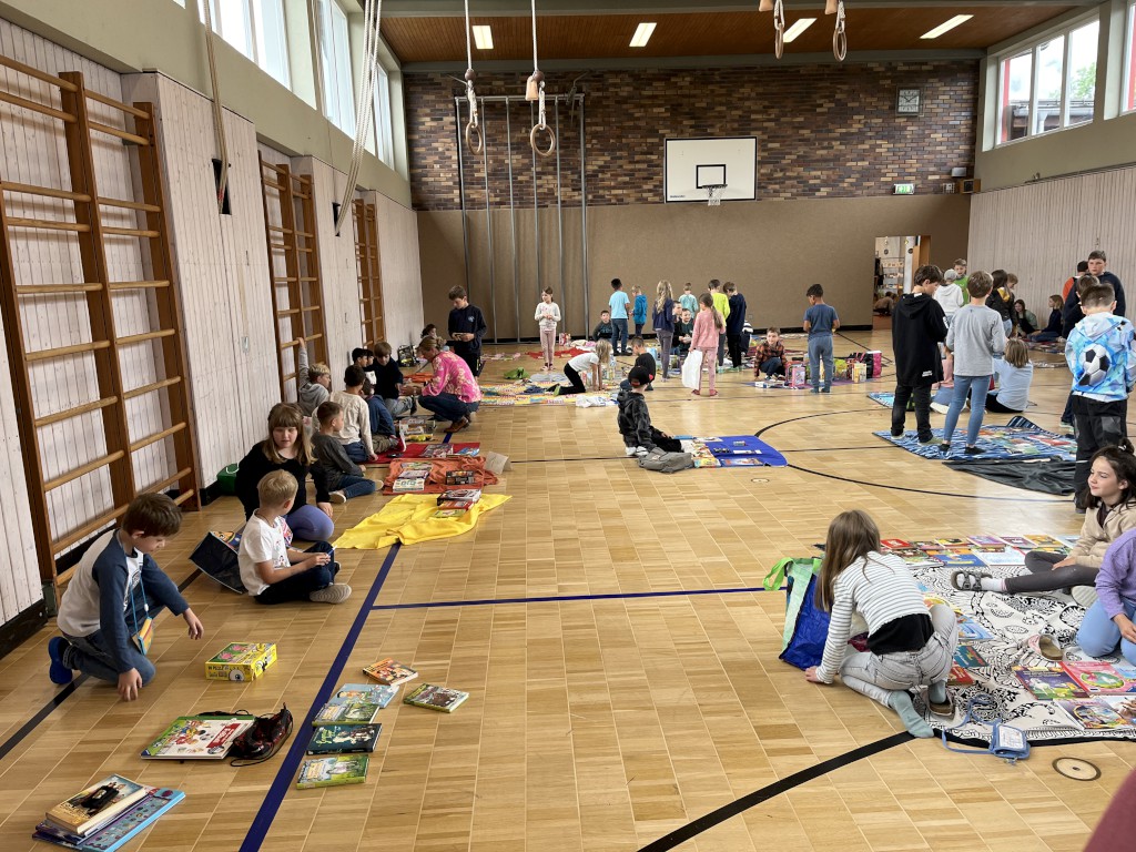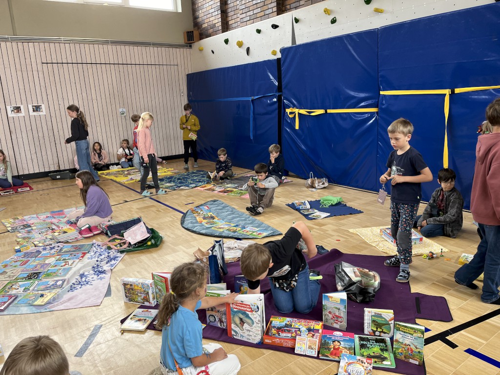 Ein großer Erfolg war auch in diesem Schuljahr wieder der Bücher- und Spielebasar der Grundschule Inzell. Die Schulkinder fieberten schon gespannt dieser Veranstaltung entgegen und als es endlich soweit war, verwandelten sich die Aula und die Turnhalle in kürzester Zeit in einen bunten und lebendigen Basar. Viele schöne Bücher und Spiele wechselten den Besitzer. Dabei wurden engagierte Verkaufsgespräche geführt, Geld gezählt und auch das Wechselgeld musste ausgerechnet und passend ausgezahlt werden.
