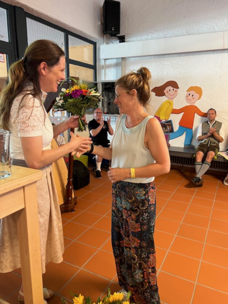 Im Rahmen der Abschlussfeier der Grundschule Inzell und der Verabschiedung der Viertklässler dankte Rektorin Elke Thurmayr der Schulbegleiterin Sandra Grimm für ihre Arbeit an der Schule und überreichte ihr als Anerkennung für ihre Arbeit einen Blumenstrauß.