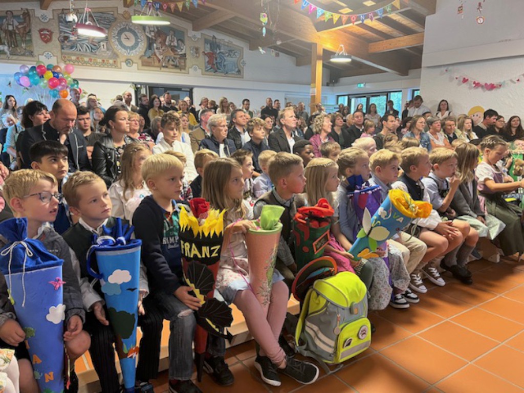 Der erste Schultag der 48 Inzeller Erstklässler begann mit einer Willkommensfeier in der Schulaula. Begrüßt wurden alle Schüler, deren Eltern und alle weiteren Gäste von der Schulleiterin Elke Thurmayr sowie von Bürgermeister Michael Lorenz. Musikalisch begleitet wurde die Feier von dem gemeinsamen Begrüßungslied der Klassen 2 – 4 „Hallo, ciao, ciao…“ sowie dem Schulchor unter der Leitung von Sabine Kübler mit den beiden Liedern „Willkommen hier bei uns im Haus“ und „Schule ist mehr“. Die Segnung der Kinder übernahmen der evangelische Pfarrer Thomas Seitz und sein katholischer Kollege Diakon Andreas Nieder.