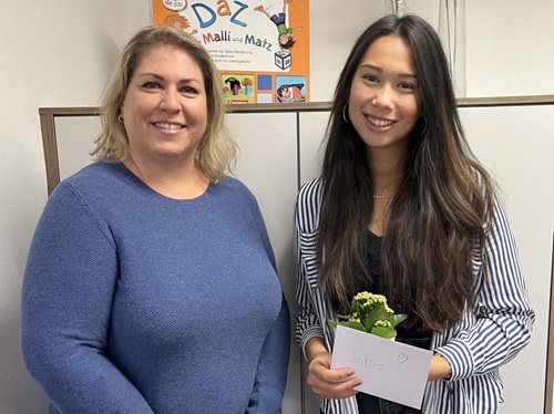 Die Grundschule Inzell und ihr Förderverein sagen "Danke" an Indira Widnyana, die als engagierte Unterstützungskraft ehrenamtlich Lehrkräfte und Kinder beim Arbeiten begleitet und unterstützt hat. Indira, die derzeit Grundschullehramt in Regensburg studiert, brachte ihre Begeisterung für die Schule aktiv mit ein und war stets eine wertvolle Hilfe im Schulalltag.
