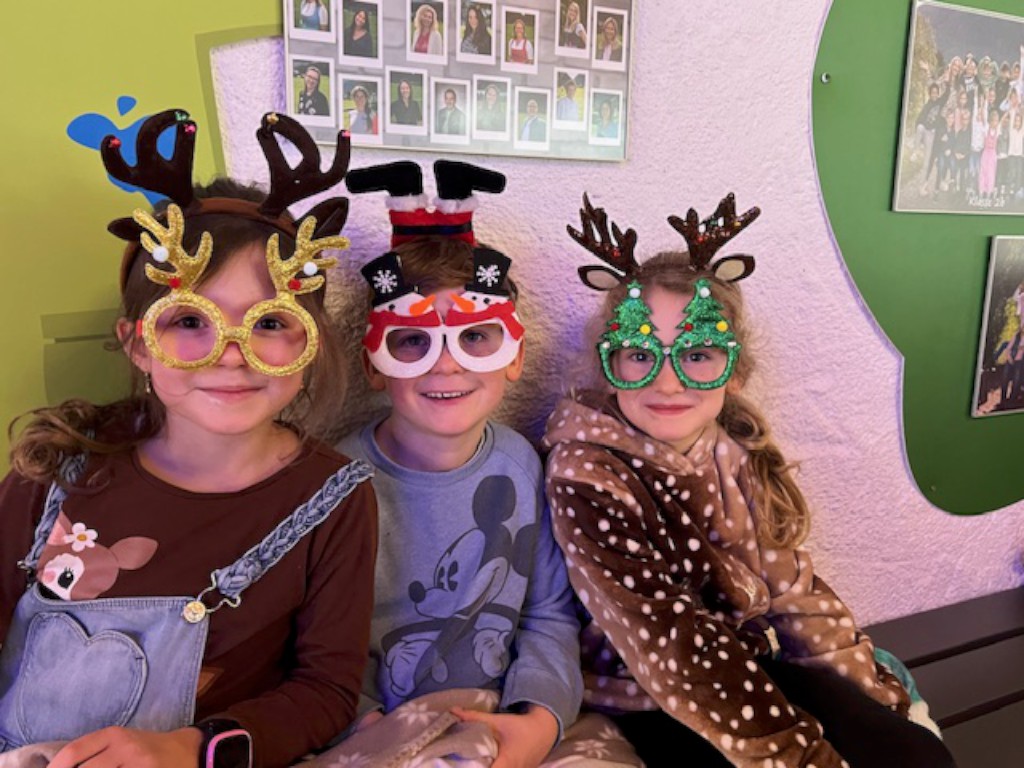 Die 1. und 2. Klassen lauschten dem Film "Weihnachtsmann Junior", während die 3. und 4. Klassen "Die Legende des Weihnachtssterns" anschauten. Um die Atmosphäre noch gemütlicher zu gestalten, brachten viele Kinder ihre Lieblingskuscheldecke oder ein kleines Kissen mit. Das freiwillige Angebot, sich weihnachtlich zu verkleiden – etwa als Wichtel, Elf, Rentier oder in einem Weihnachtspulli – fand großen Anklang und verlieh dem Event eine besondere Note. Mit frischem Popcorn und einer warmen, festlichen Stimmung wurde das Kinoerlebnis perfekt. Die Kinder waren begeistert, lachten viel und fieberten mit den Figuren auf der Leinwand mit.