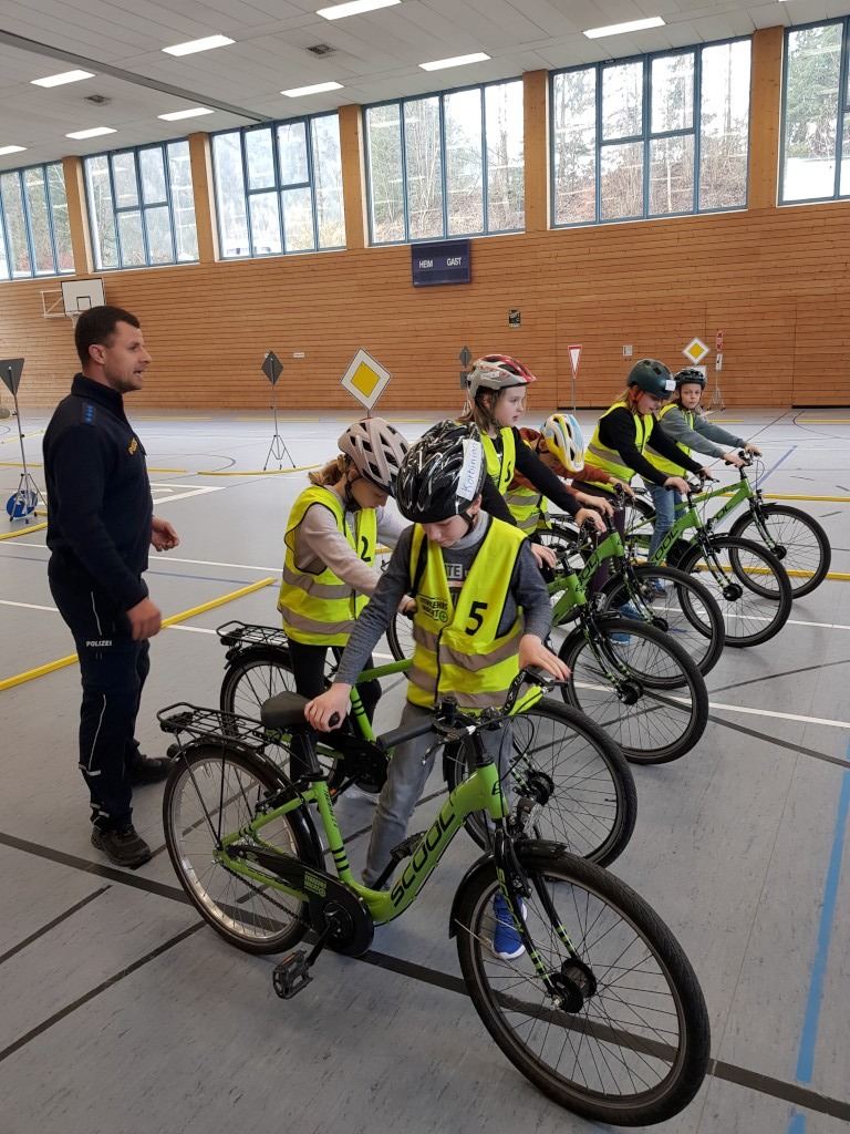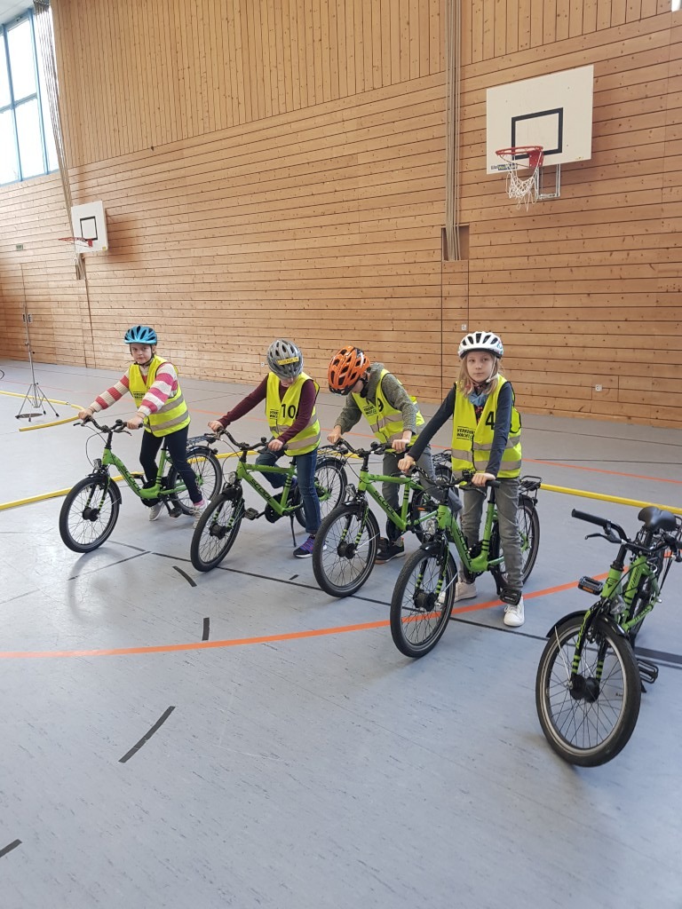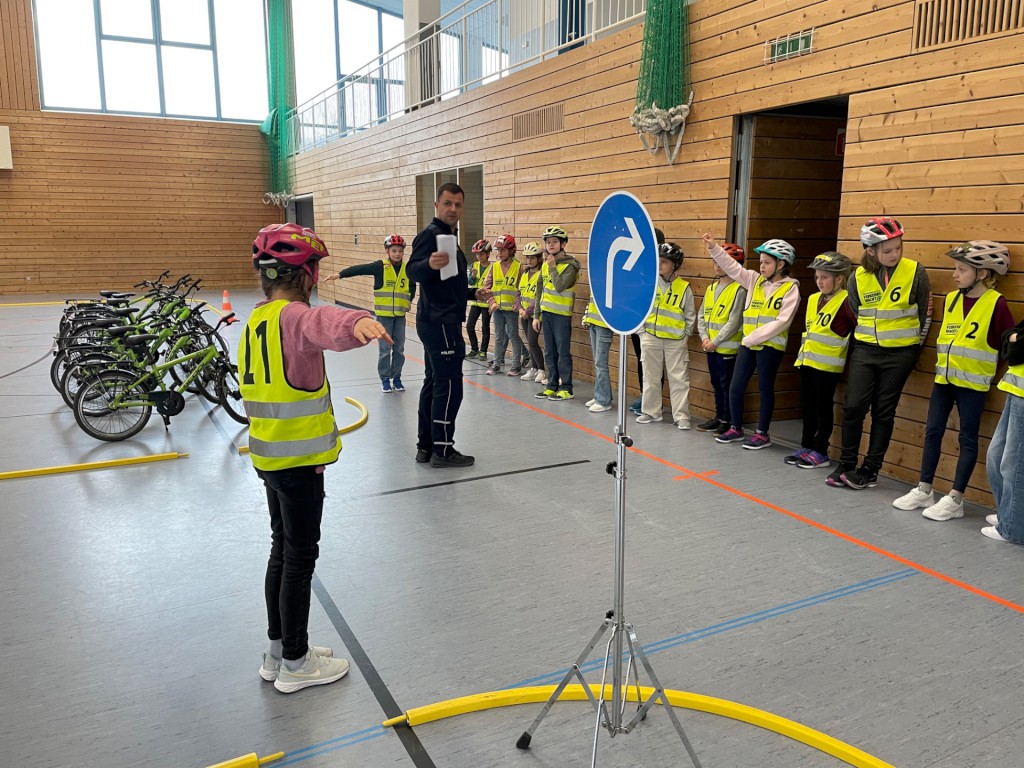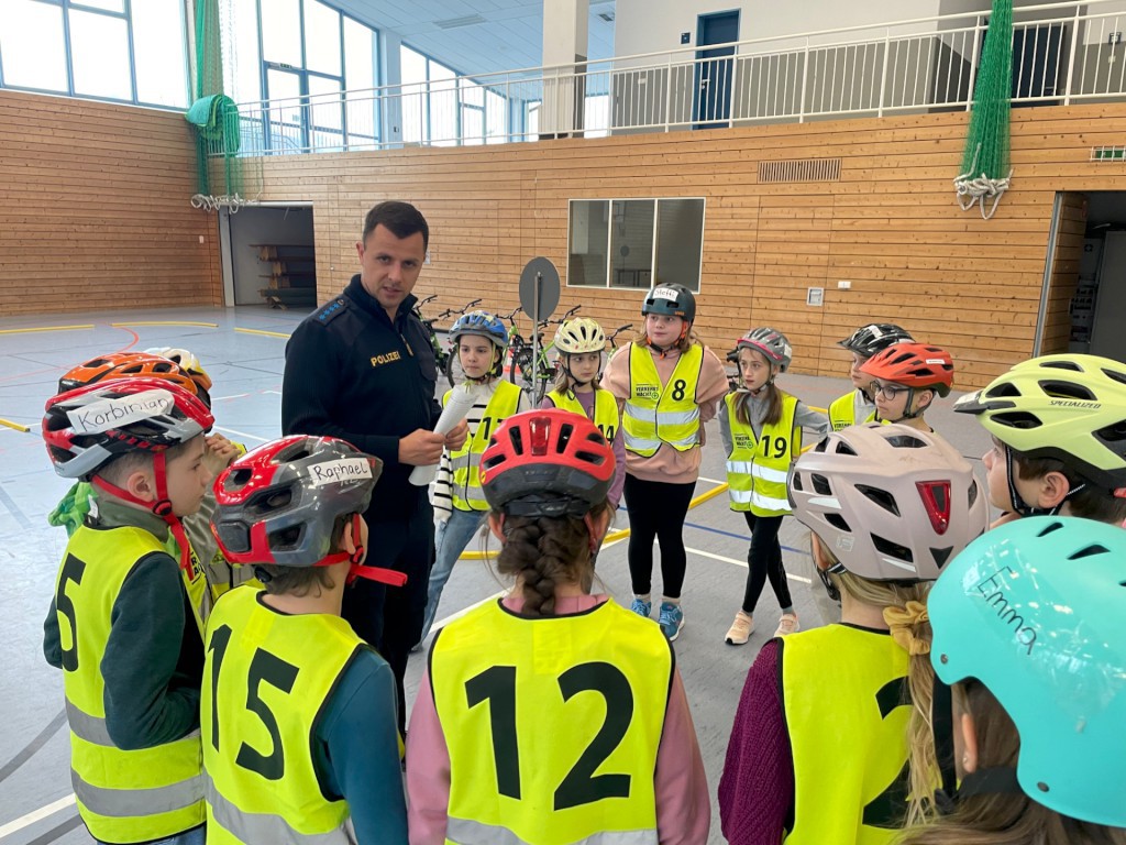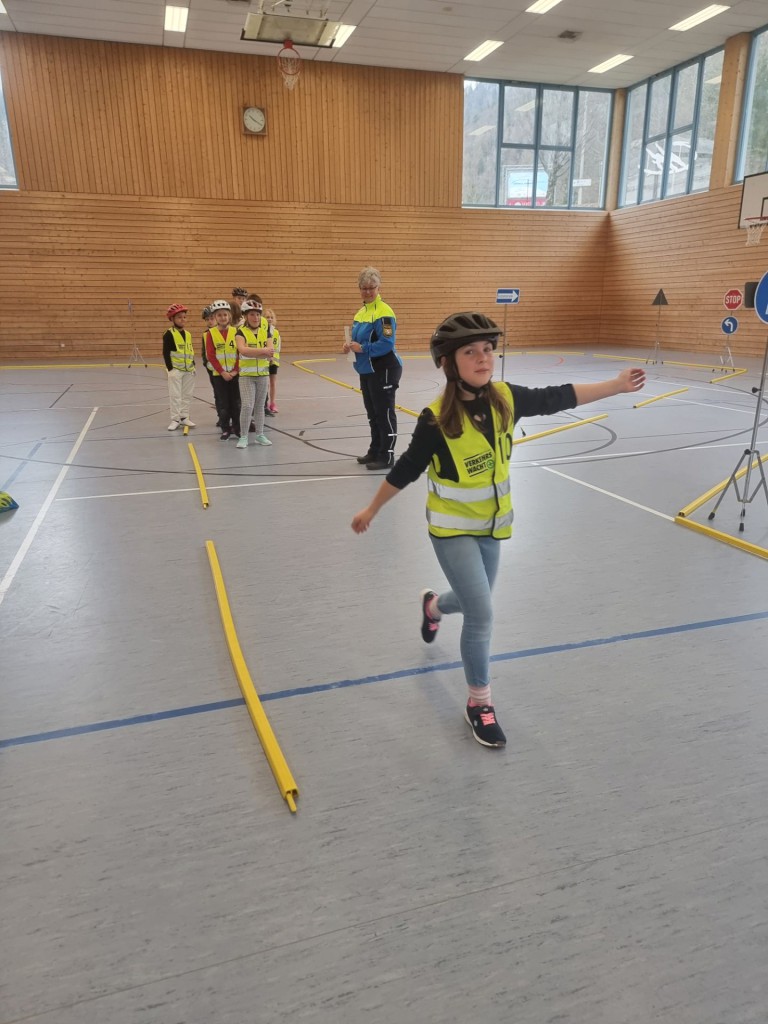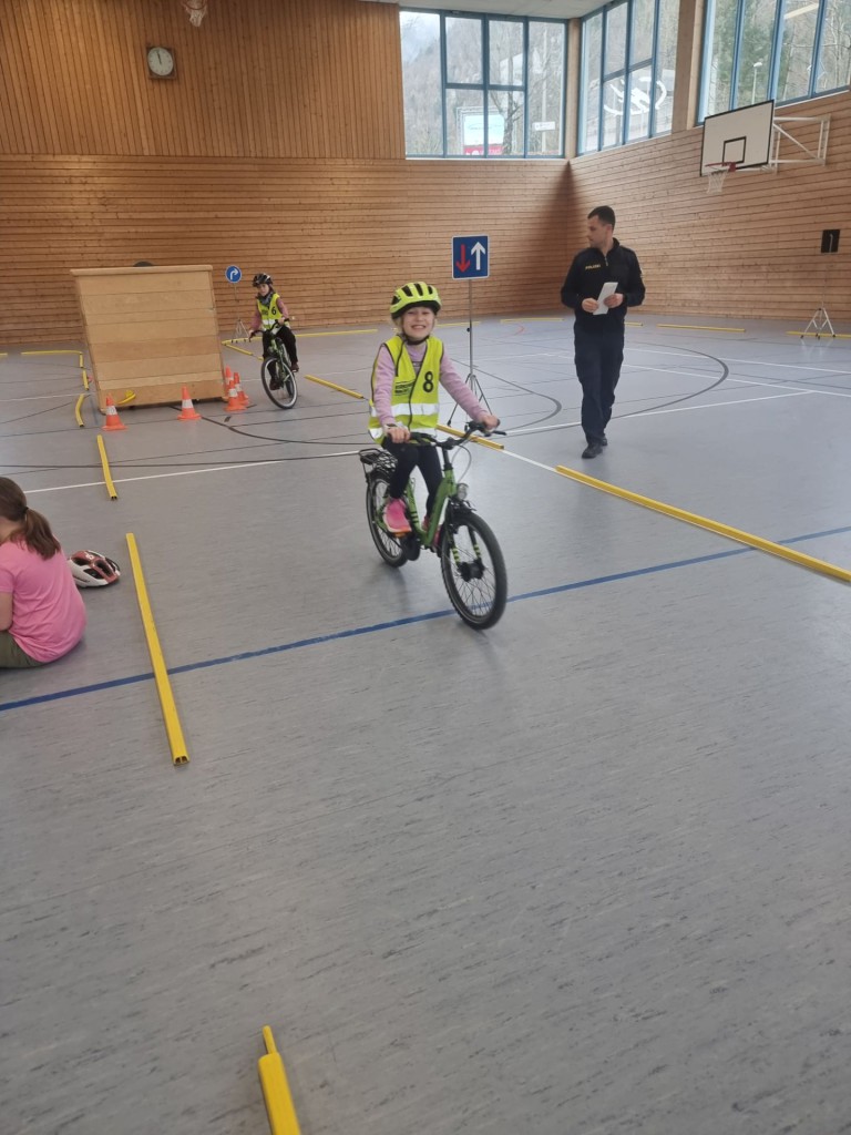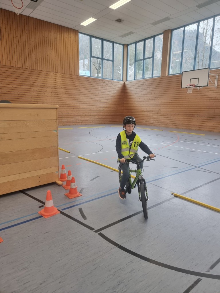 Die praktischen Übungseinheiten fanden unter der fachkundigen Leitung der Verkehrspolizisten Roswitha Rodler und Christoph Obermair statt. In der Turnhalle beim Eisstadion trainierten die Kinder mit Unterstützung ihrer Lehrkräfte Antonia Gemsjäger und Maria Moser verschiedene Verkehrssituationen, übten das richtige Verhalten an Kreuzungen und das sichere Abbiegen. Mit Geduld und Engagement vermittelten die beiden Polizisten den jungen Radfahrern nicht nur die Verkehrsregeln, sondern auch ein Bewusstsein für Gefahren und ein sicheres Fahrverhalten. In jeder Einheit motivierten sie die Kinder aufs Neue, sodass die Vorbereitung nicht nur lehrreich, sondern auch mit viel Freude verbunden war.