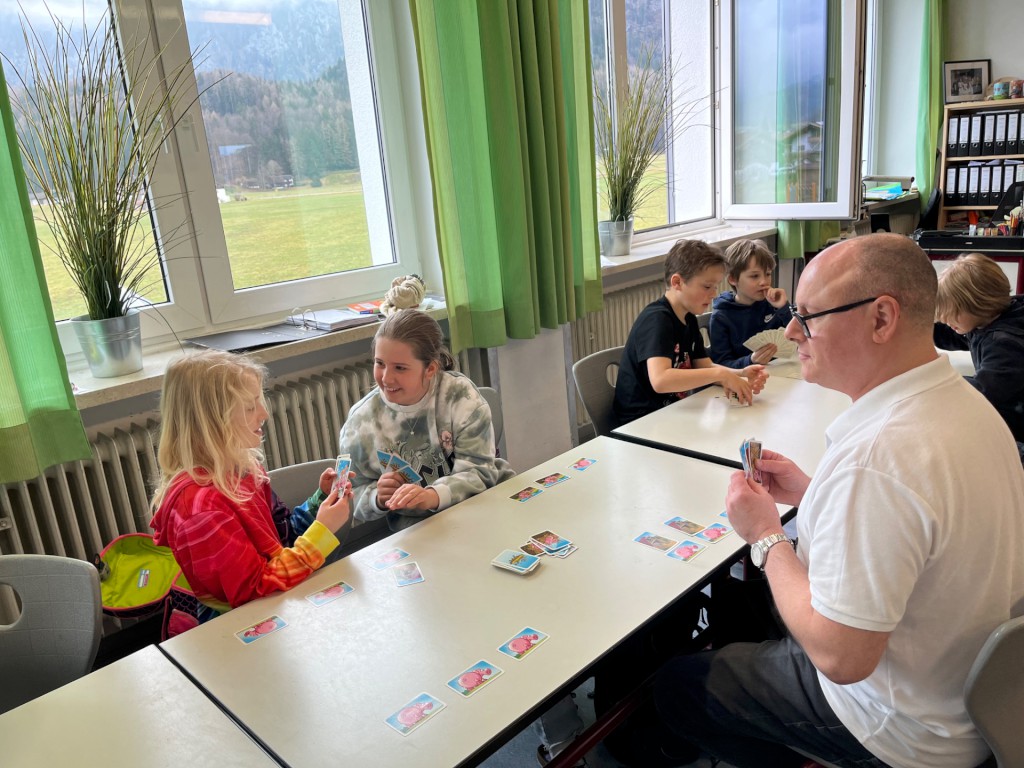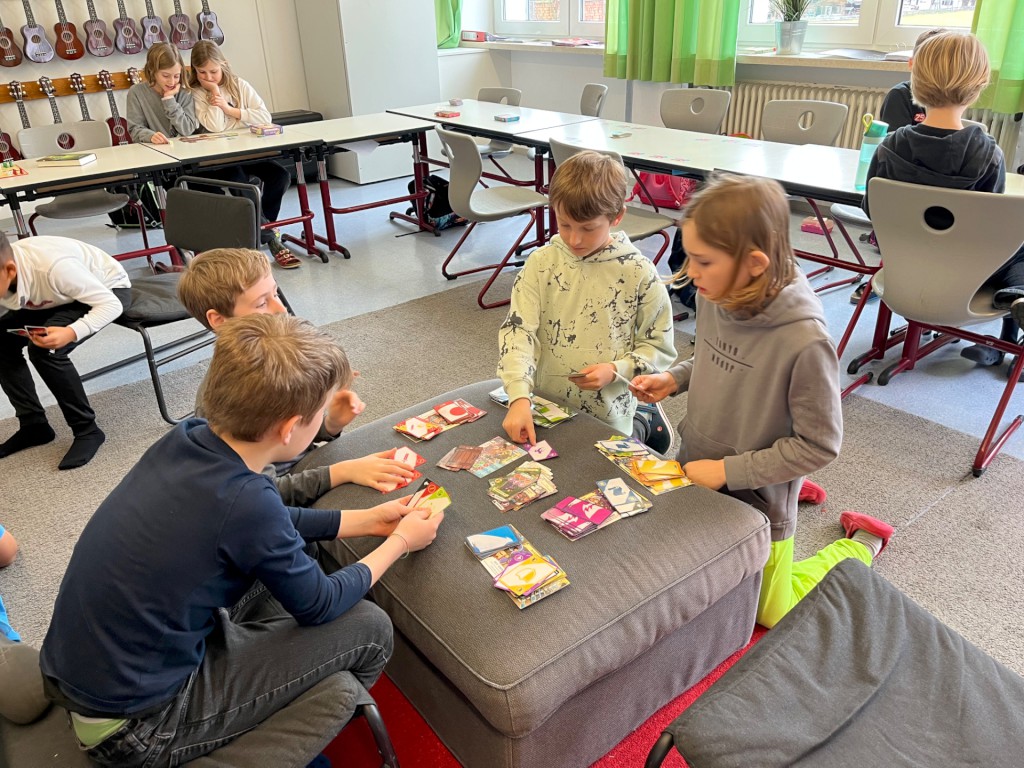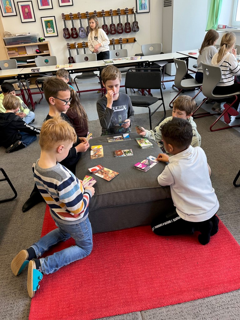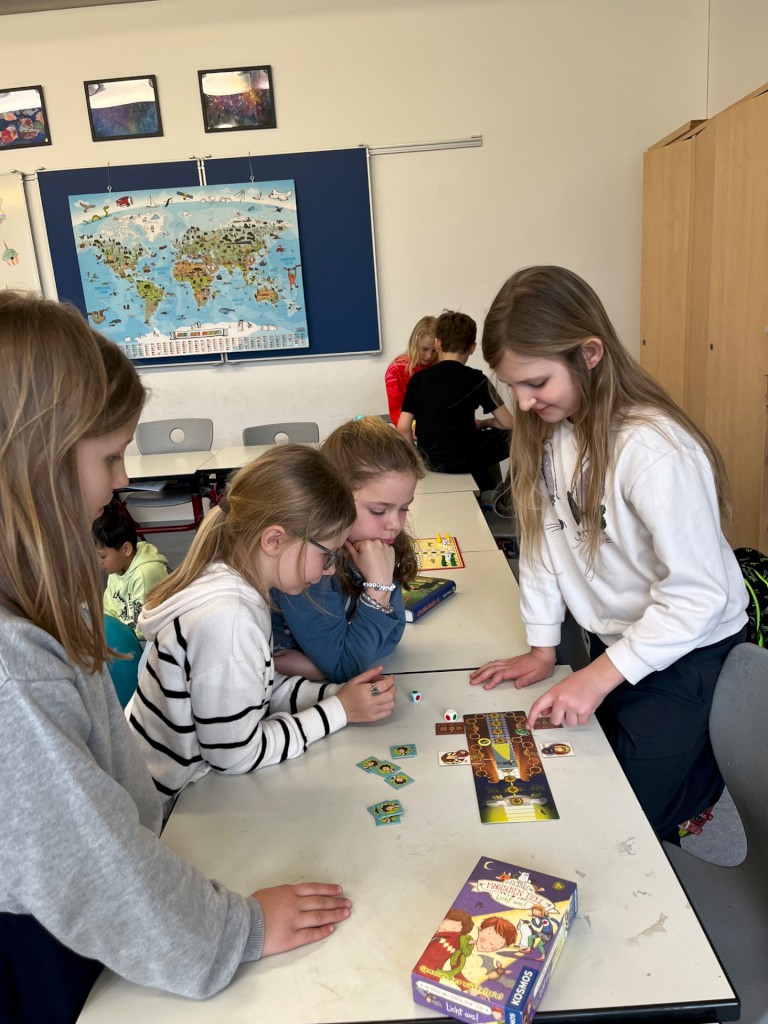In den folgenden Wochen wurden dann verschiedene Klassen zur „Spielestunde“ eingeladen. Dabei fungierten die 4. Klässler als Experten und die Gäste durften das vielfältige Spieleangebot austesten.