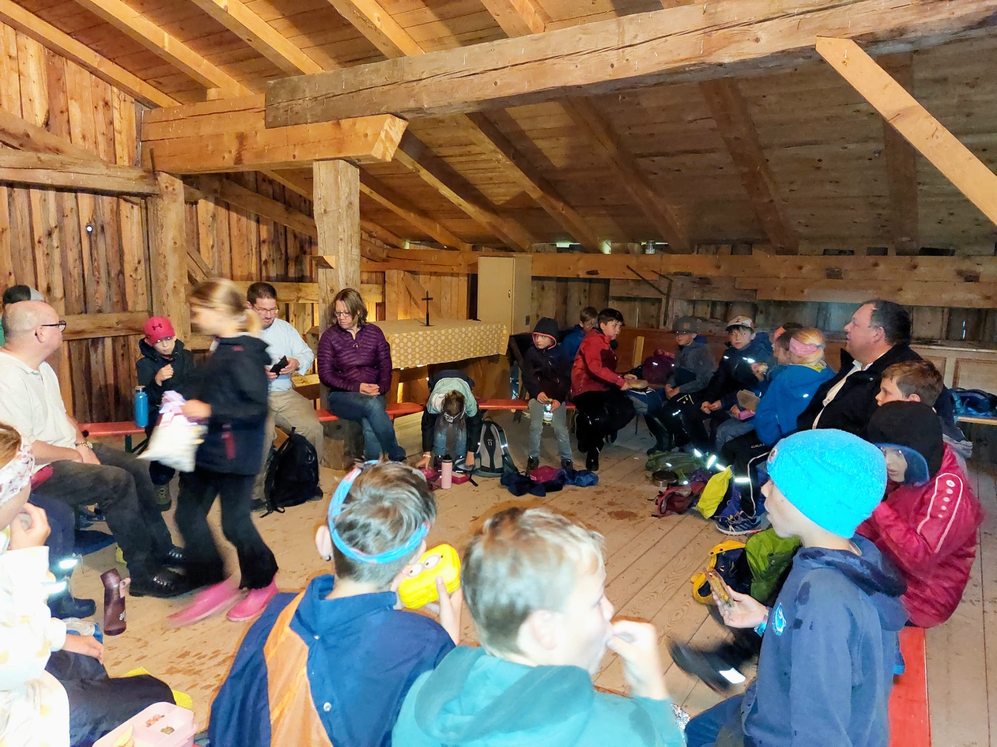 In Maria Eck angekommen, wurden sie herzlich von Diakon Nieder begrüßt, der sich um die Organisation des Ausflugs gekümmert hatte. Dank der freundlichen Unterstützung des Klosters Maria Eck konnte die Gruppe im Mittereggstadl Unterschlupf finden – eine willkommene Lösung, da das Wetter keine Aktivitäten im Freien zuließ.