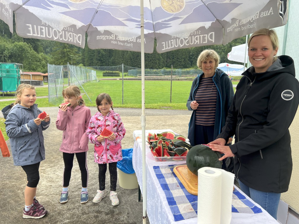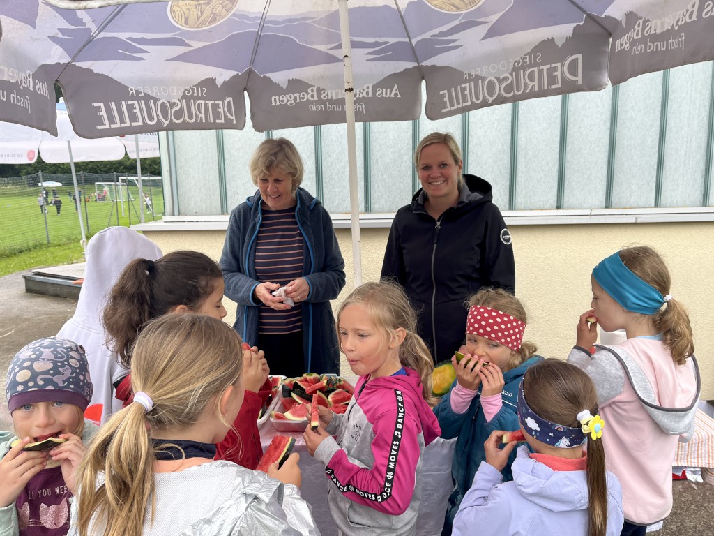 In den Pausen sorgten zwei engagierte (Groß-)Eltern mit frisch aufgeschnittener Melone für eine willkommene Erfrischung. Die saftigen Stücke fanden bei den Kindern großen Anklang und spendeten Energie und Abkühlung zugleich.