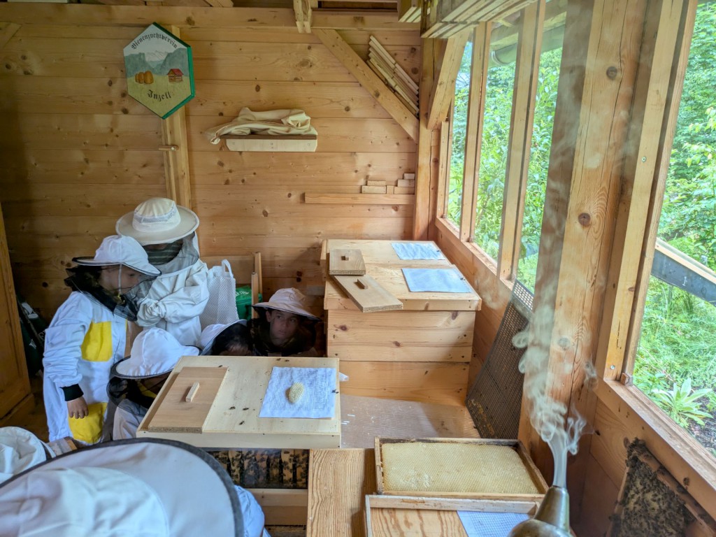 Ein besonderes Erlebnis bietet das Vereinsbienenhaus auch Spaziergängern: Durch ein aufklappbares Fenster erhält man einen Blick direkt ins Bienenvolk – mit etwas Glück sogar auf die Königin.