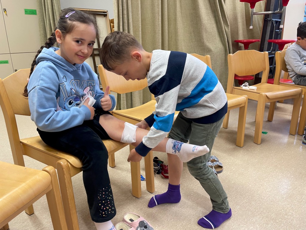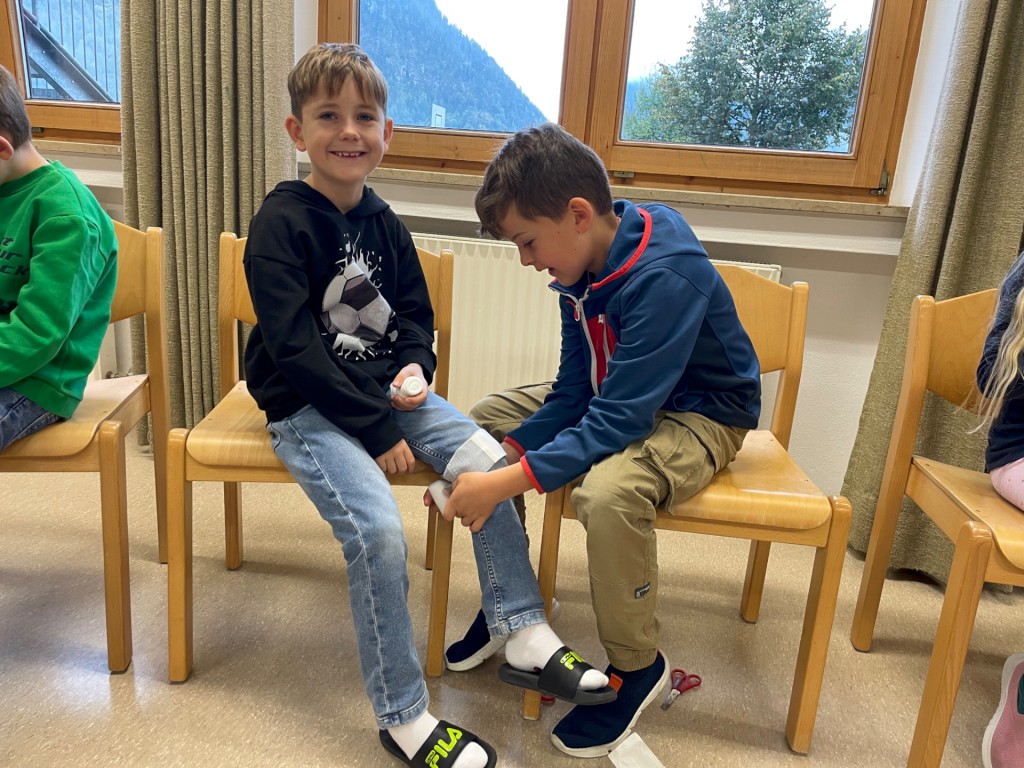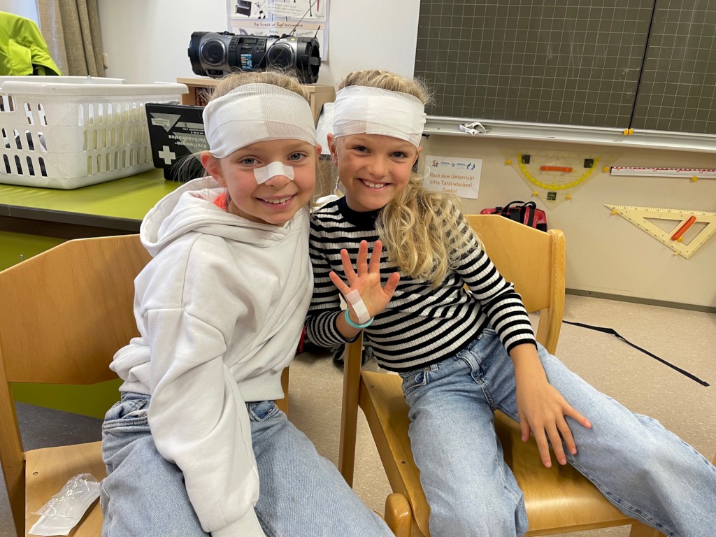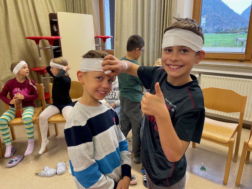 Schon eine Woche später startete Toni Obermayer den Kurs zum Schulersthelfer für alle interessierten Kinder. Nach der Ausbildung dürfen die Drittklässler nun während der Pausen und bei Schulveranstaltungen ihren Mitschülern Erste Hilfe leisten. Die Begeisterung war groß – fast alle Kinder meldeten sich für den zweiten Teil des Kurses an!