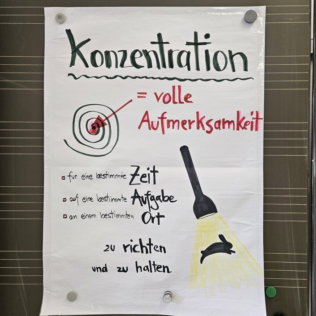 Zu Beginn des Workshops machten die Schüler Bekanntschaft mit ihrem „inneren Kommentator“ – den Gedanken, die oft unbewusst das Lernen beeinflussen. Negative Überzeugungen und hinderliche Lernmuster wurden in gruppendynamischen Prozessen aufgelöst und durch positive Selbstaffirmationen wie „Ich kann das!“ oder „Ich gebe mein Bestes!“ ersetzt.