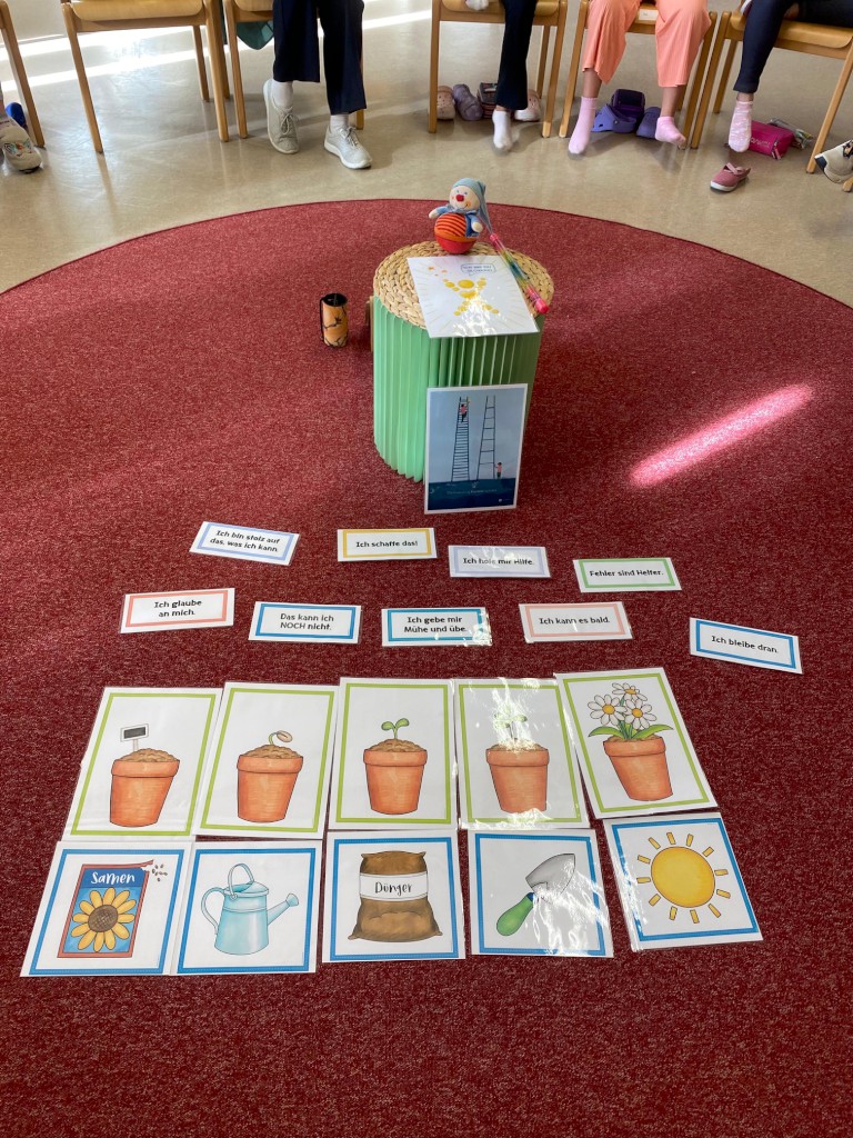 Als Erinnerung erhielten die Kinder zu jedem Thema passende Arbeitsblätter und besonderes Material wie selbst gestaltete GlüXkarten mit stärkenden Affirmationen oder kleine Mutmachsteine.
