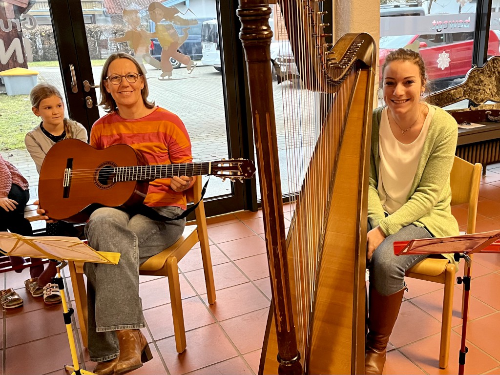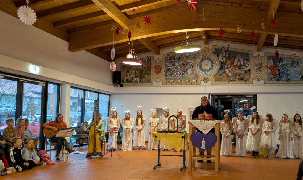 Musikalische Highlights wie das wöchentliche „Am Kranz brennt an Kerzerl“ und traditionelle Weihnachtslieder wie „Leise rieselt der Schnee“, „Alle Jahre wieder“, „Oh Tannenbaum“, „Ihr Kinderlein kommet“ und „Lasst uns froh und munter sein“, begleitet von Lisa Koch an der Gitarre und Katharina Holzner an der Harfe, machten die Andachten besonders stimmungsvoll.