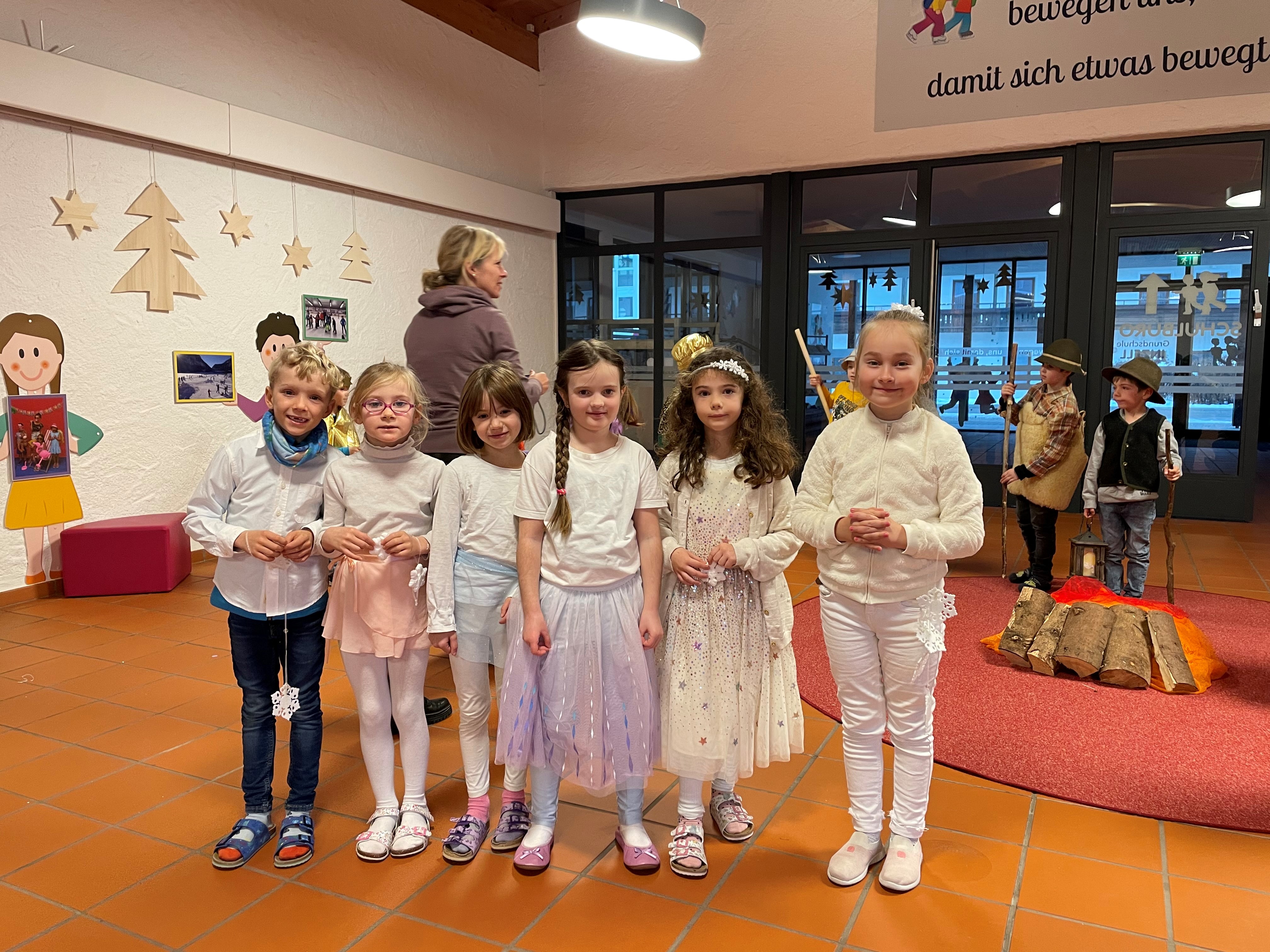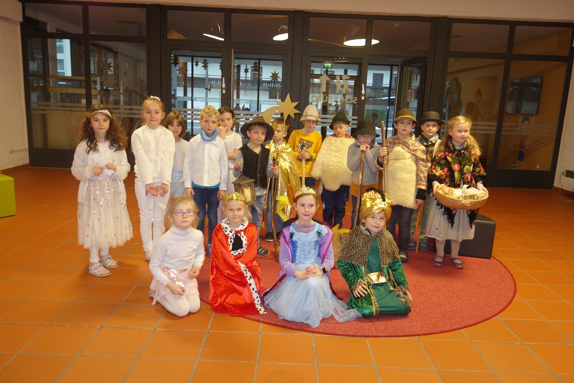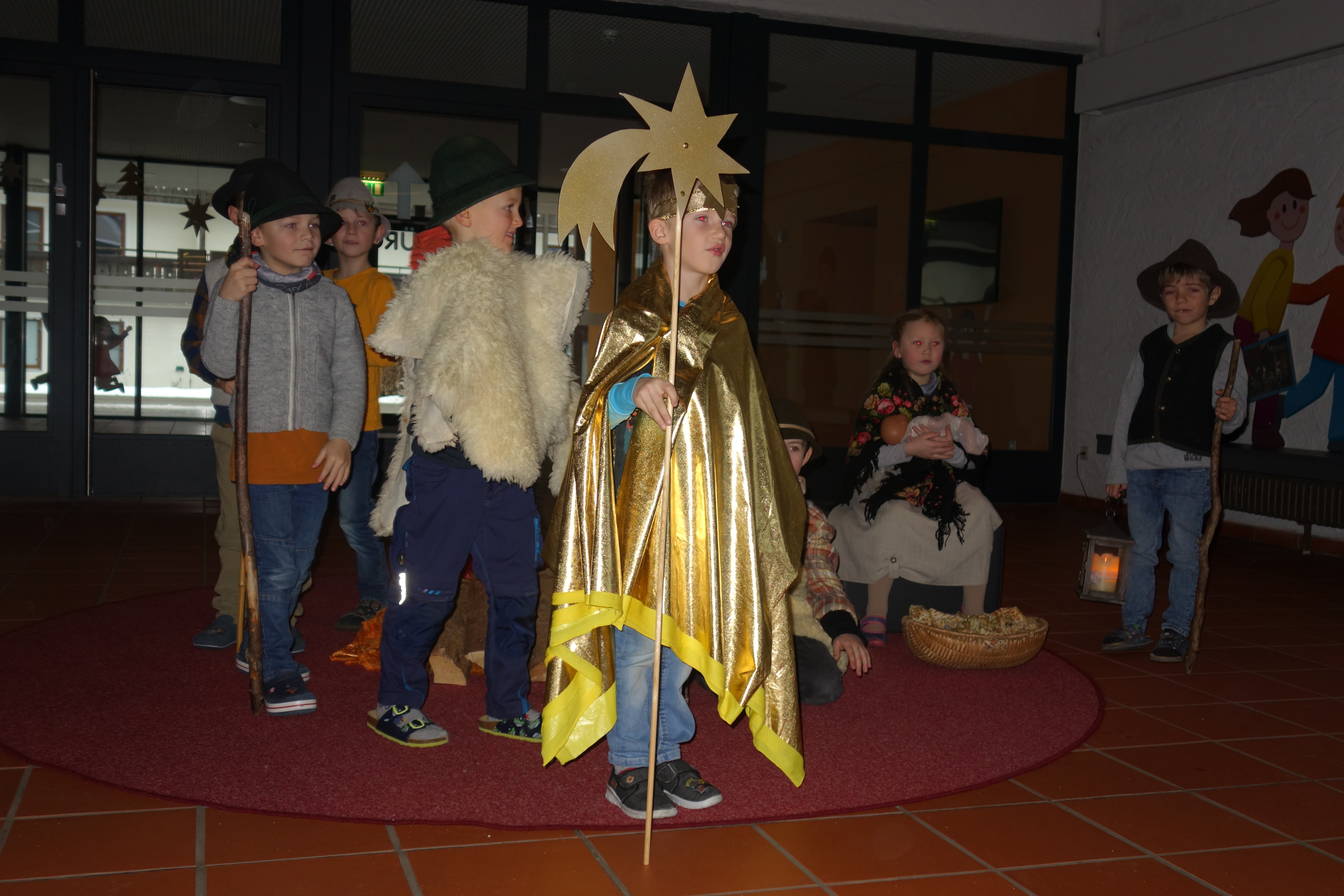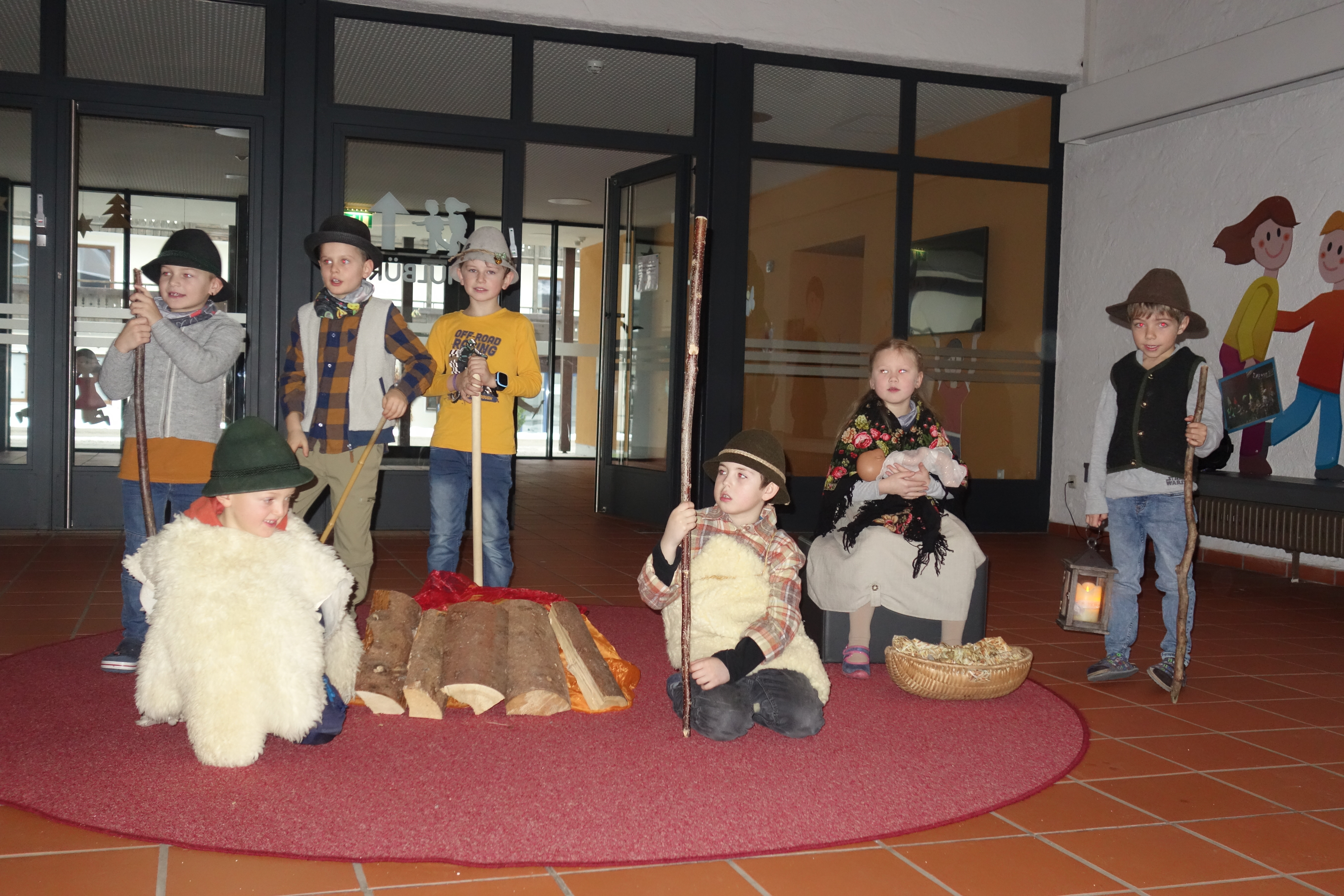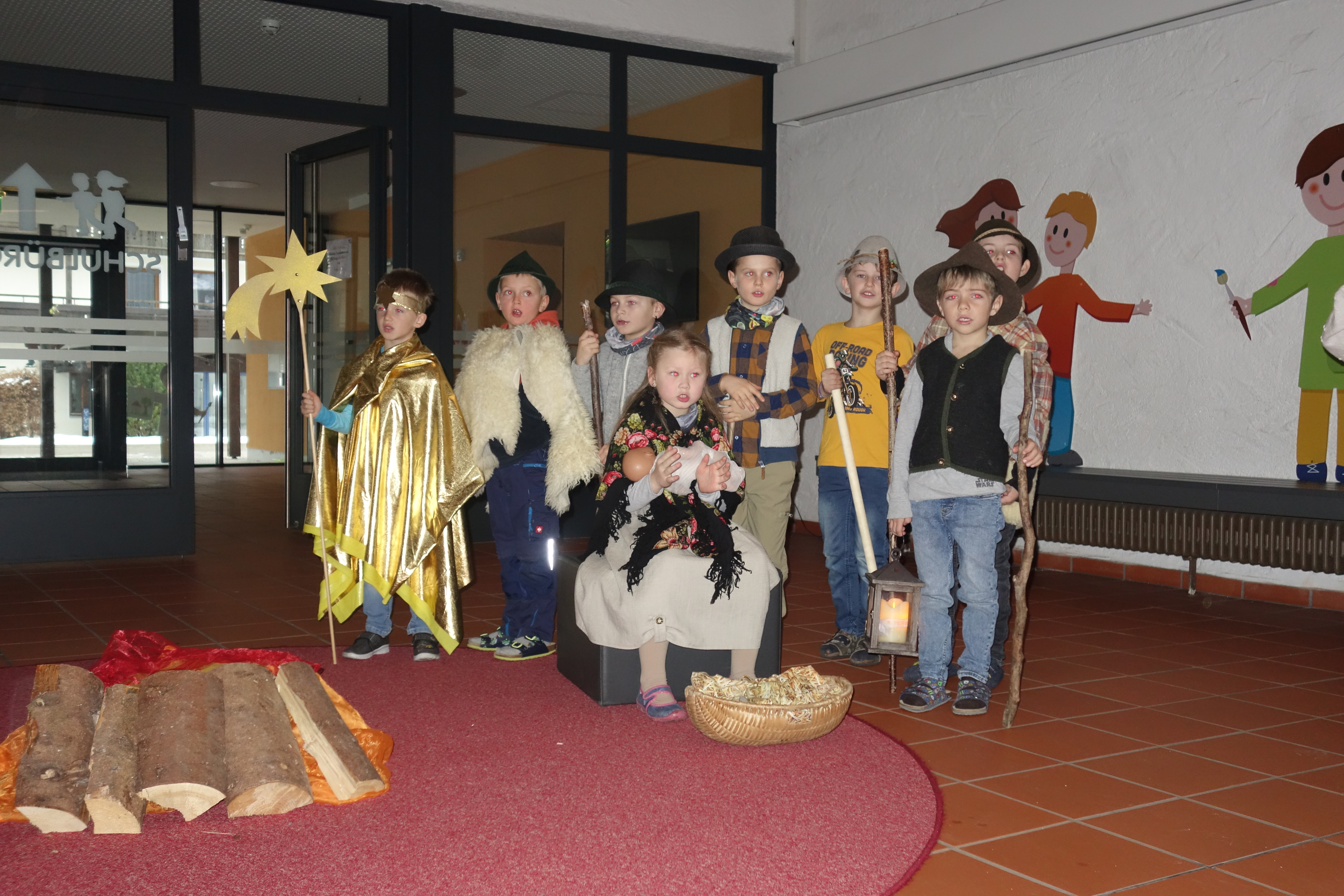 Zur Einstimmung auf das bevorstehende Weihnachtsfest führten die Kinder unter Leitung von Lehrerin Lisa Koch ein musikalisches Krippenspiel vor. Mit dabei waren neben der Heiligen Familie viele Hirten, Engel, ein Sternträger und die Heiligen Drei Könige. Die Kinder trugen passende Kostüme und Ausrüstung. Sie erhielten für Ihre Darbietung von allen Zuschauern einen großen Applaus.
