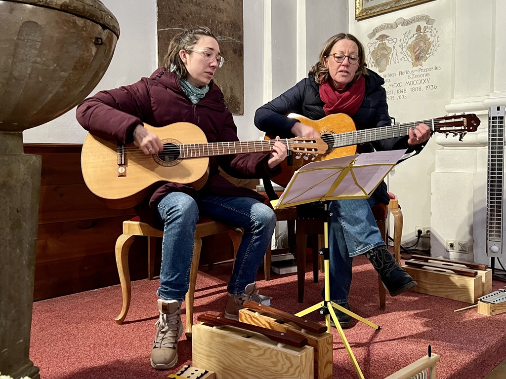 Danach beteten alle zusammen das Vaterunser und wünschten sich gegenseitig Frieden im Herzen und auf der Welt. Anschließend stimmte der Lehrerchor gefühlvoll das Lied „Es wird scho glei dumpa“ an.